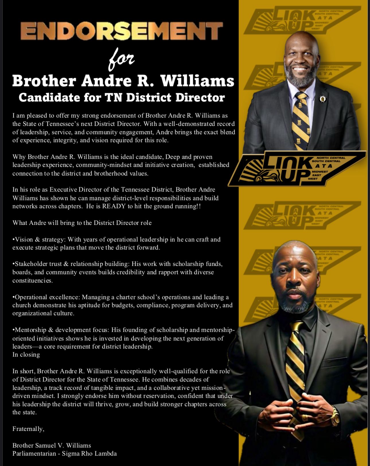 30 years of Ministerial Leadership Senior Pastor of Hebron Baptist Church Director of Operations - Star Academy Charter School Founder of The Men United Scholarship Fund Board Chairman - The Gentlemen's League Founder of The Yellow Rose Brunch Executive Director - Tennessee District Charter Member - Sigma Rho Lambda Chapter Past President - Sigma Rho Lambda Chapter